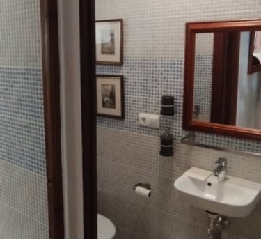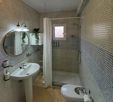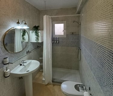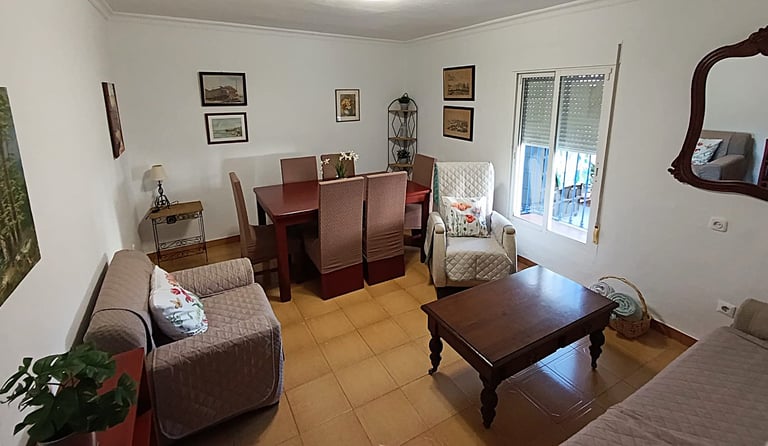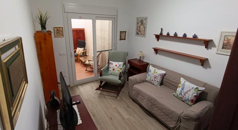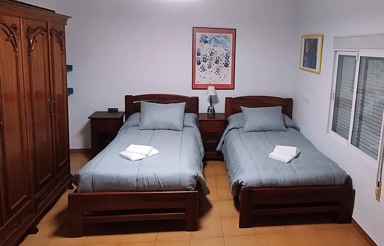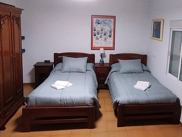 Disponemos de dos dormitorios, uno con dos camas individuales y otro con cama de matrimonio, ambos con amplios armarios, calefacción y ventilador, que se comunican mediante ventanas con el patio interior.