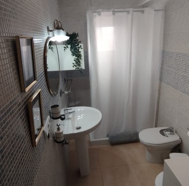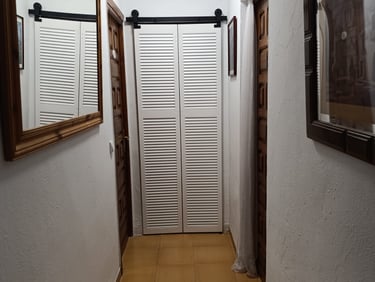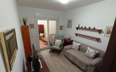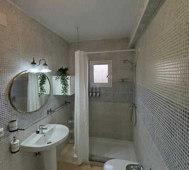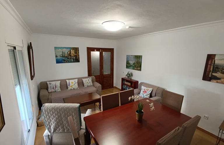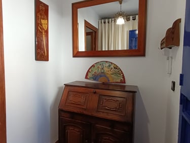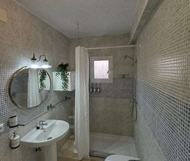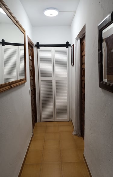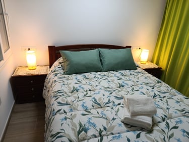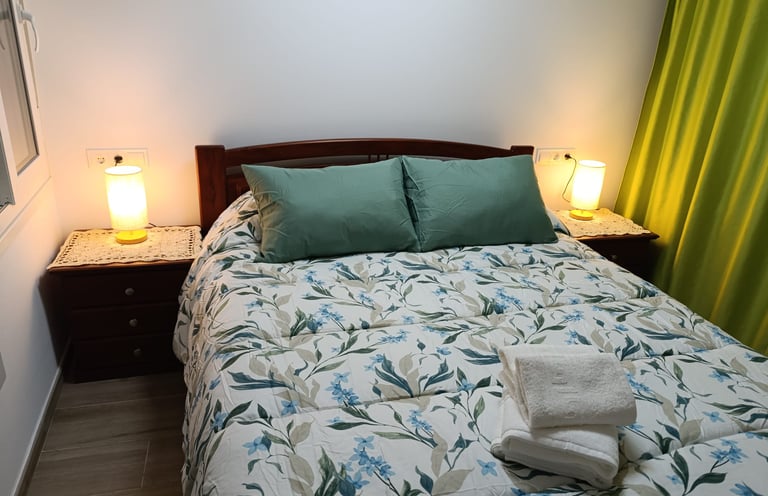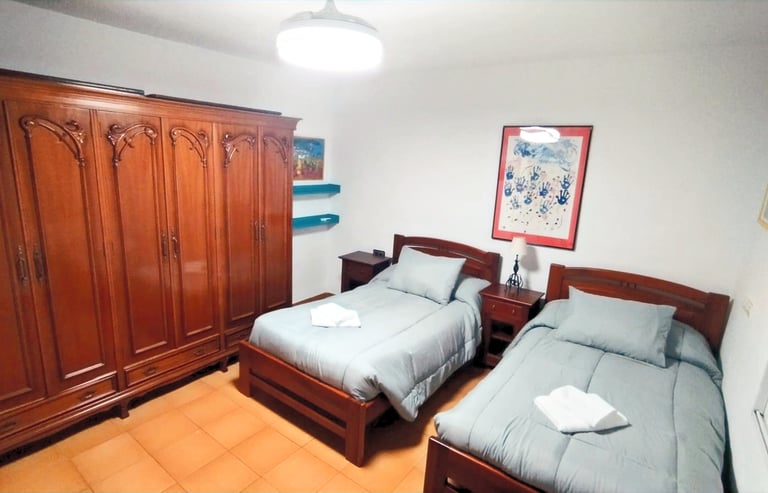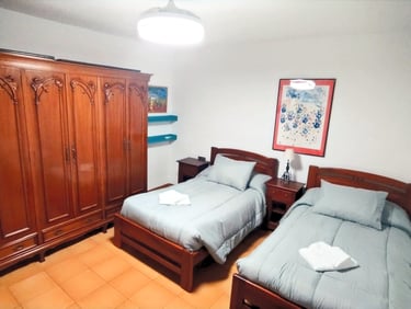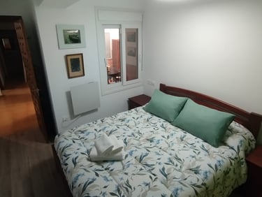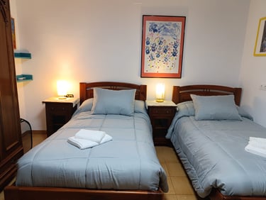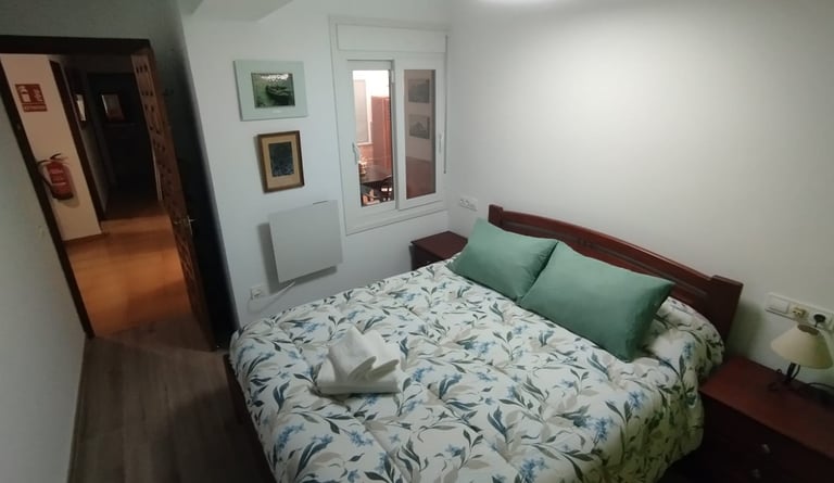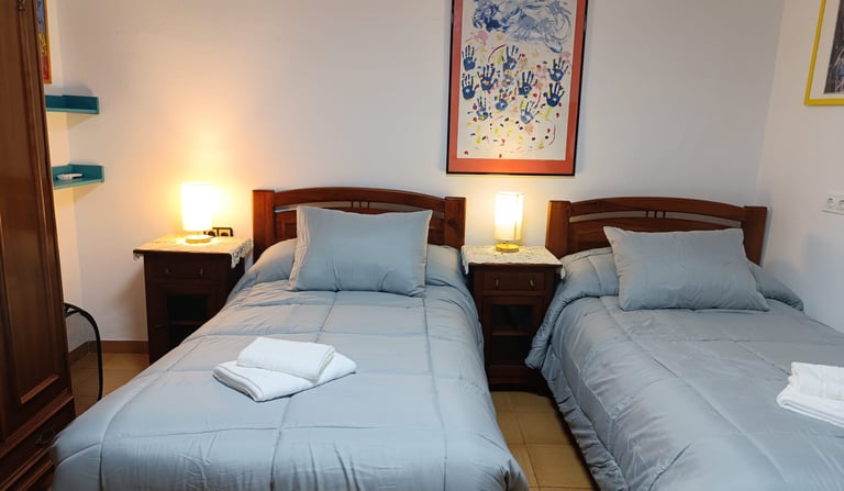 Disponemos de dos dormitorios, uno con dos camas individuales y otro con cama de matrimonio, ambos con amplios armarios, calefacción y ventilador, que se comunican mediante ventanas con el patio interior.