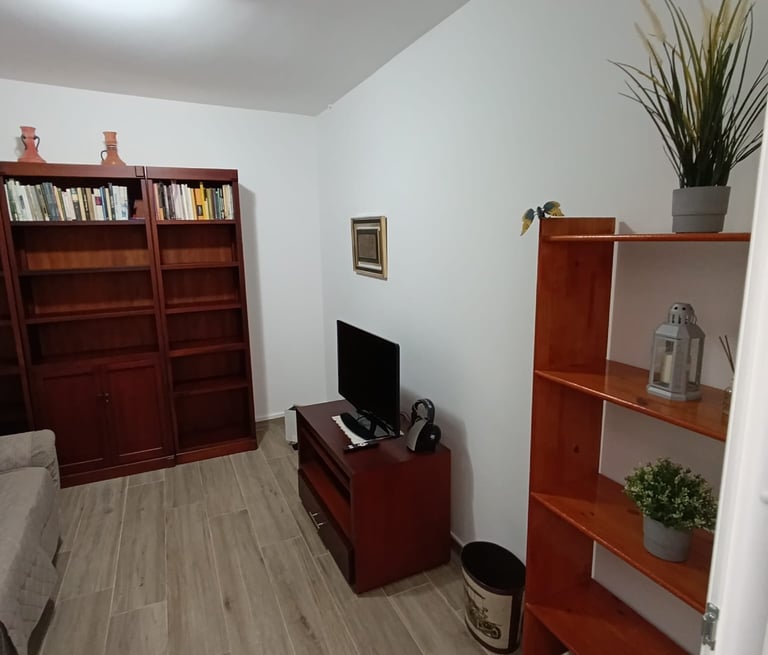 La salita de estudio y televisión, además del patio, brindan espacios muy gratos para el teletrabajo y, al mismo tiempo, para el descanso en un ambiente relajado.